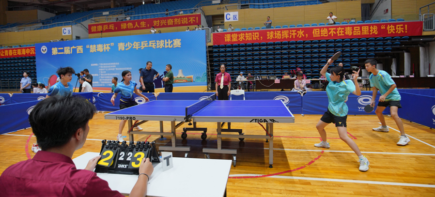 9月6日至7日,广西壮族自治区禁毒委、自治区体育局、共青团广西区委、广西大学在南宁联合举办第二届广西“禁毒杯”青少年乒乓球比赛。来自全区14个设区市代表队和部分高校代表队500多名青少年同台竞技,在赛场上展现青春风采、助力禁毒宣传。