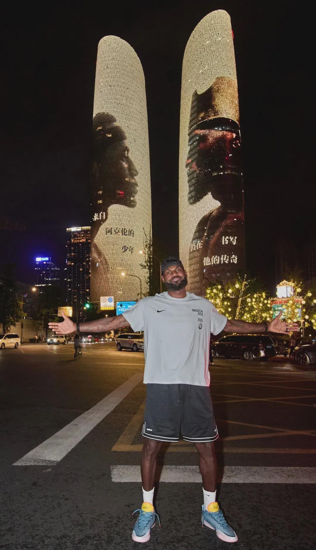 詹姆斯与成都双子塔合影