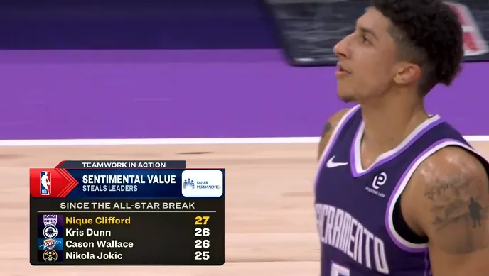 第三节比赛中,国王球员克利福德目前送出1次抢断。