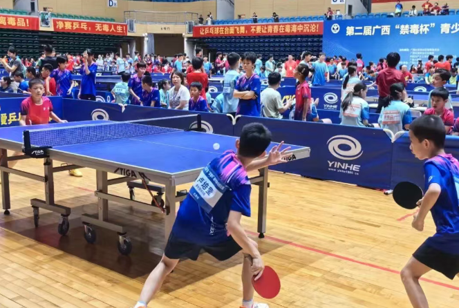9月6日至7日,广西壮族自治区禁毒委、自治区体育局、共青团广西区委、广西大学在南宁联合举办第二届广西“禁毒杯”青少年乒乓球比赛。来自全区14个设区市代表队和部分高校代表队500多名青少年同台竞技,在赛场上展现青春风采、助力禁毒宣传。